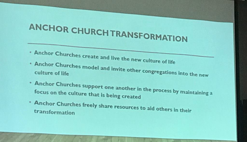 “Anchor Churches” can connect with other congregations, share resources, renew, and revitalize. Developing relationships, create partnerships to serve the Gospel and to revitalize congregations that need direction. To learn more: What Is An Anchor Church?