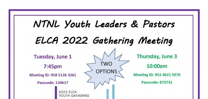 Message from Bishop Gronberg Dear Partners in Mission: Last Thursday I had the opportunity to participate in one of our NT-NL 2022 ELCA Youth Gathering information sessions. Due to demand,…