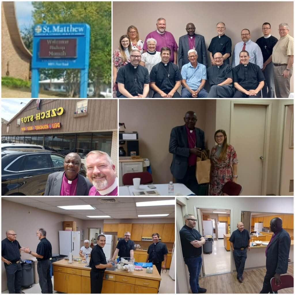 The first full day of having Bishop Momoh from our partners of the Evangelical Lutheran Church in Sierra Leone (ELCSL) was a #milesandmiles adventure. Bishop and I traveled down to Waco to St. Matthew Lutheran which has long been a supporter of the ELCSL. There we enjoyed lunch provided by the Heart of Texas conference pastors (look at all those pastors serving in the kitchen) and learned and shared about the history and ministry of NT-NL Synod, ELCA and the ELCSL. He then joined us at Briarwood Leadership Center with our NT-NL Candidacy committee and candidates for ordination.