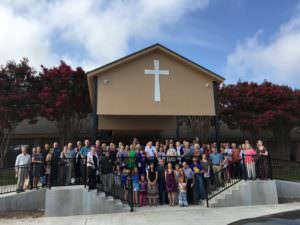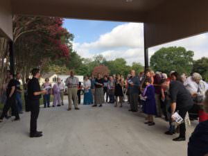 The service began by gathering all the attending souls together for a group photo at the portico (bridge) that welcomes people of all ages and abilities with a sloped approach and a covered entrance. Pr. Heath Abel welcomed everyone with a reminder of why this is an important piece to their mission.
