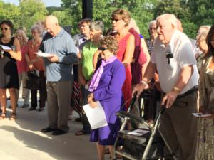 Caroline Brown (the woman in purple) set this all in motion 5 years ago after the congregation adopted their new mission statement. She began the service with the opening prayer.