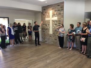 Pastor Heath Abel shared a message at every stop along the dedication about how each addition was about the work of God and the mission of the church. We gathered in the narthex at the cross which ties to the sanctuary stained glass window. His message was about how we always gather around the cross, and we not only fulfill the mission but we fill the community with every person’s unique gifts and work.