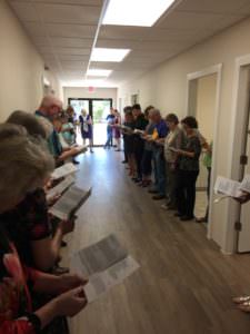 Members filled the hallway to the two new classrooms and two handicap accessible bathrooms.