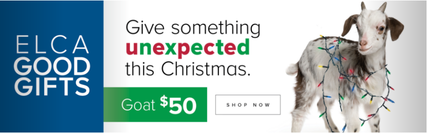 Americans spend over $300 billion on Christmas shopping each year. This year, consider giving gifts that fight hunger and grow the church with ELCA Good Gifts. Select from more than 50 gifts – from goats to water filters to school fees – to help people in need. All gifts can be given in honor of friends and loved ones, and each gift comes with a free card for you to share the news. Give online and you can now personalize cards to send directly to your loved one’s mailing or email address.