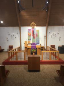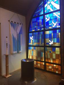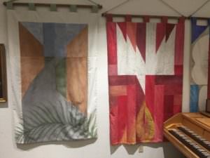 It was fun to watch him in action in his congregation. This place is blessed with some amazingly talented folks. The sanctuary is filled with their works of art. From the pipe organ (constructed by a member of the congregation who does that for a living,) to the banners that are hand-painted fabric which are sewn into beautiful artwork (designed and made by an artist member of the congregation), to the weaving on the wall and the baptismal corner of the sanctuary, I was blown away by all the beauty in this place.