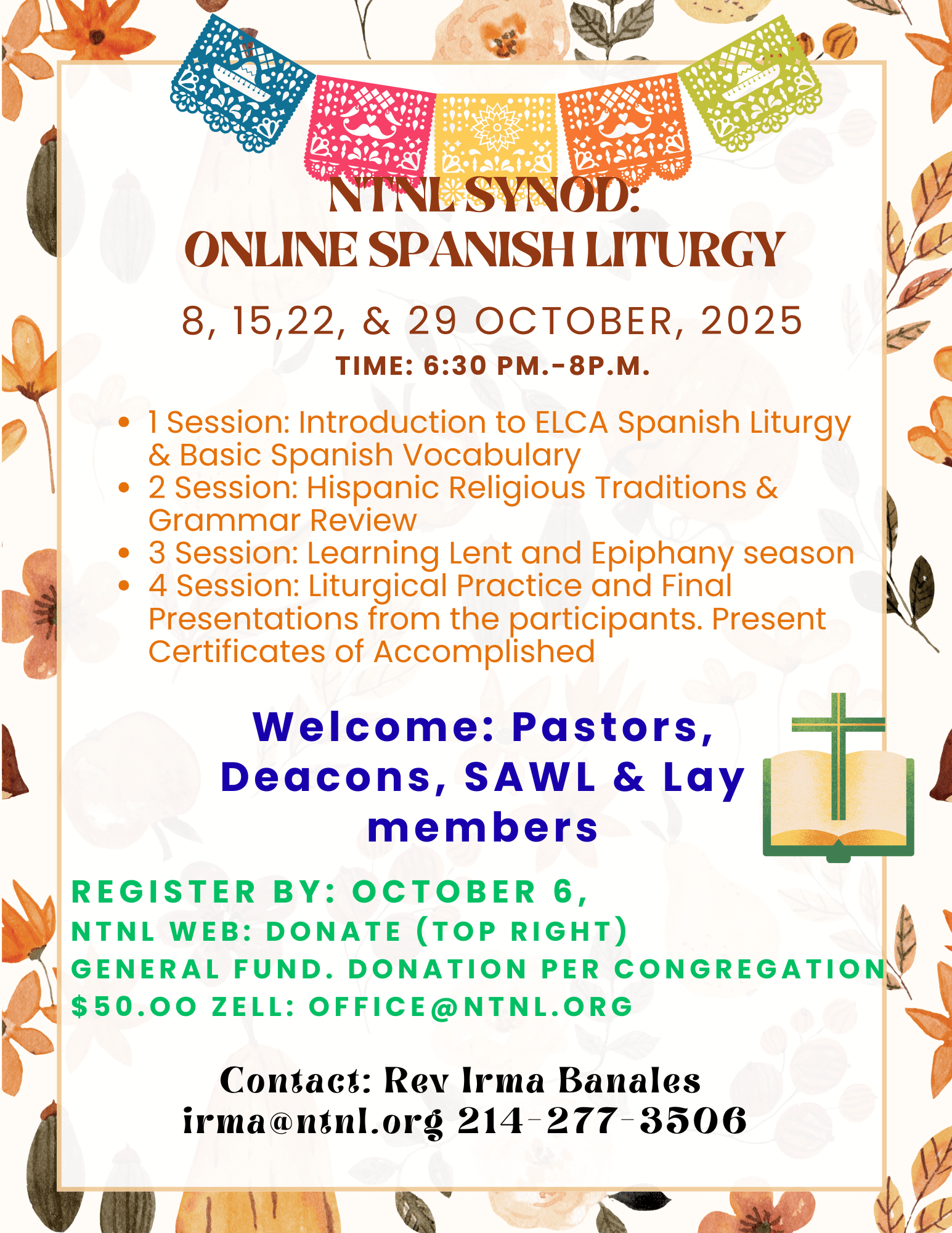 If you have any questions please contact Pastor Irma Banales at Irma@NTNL.org