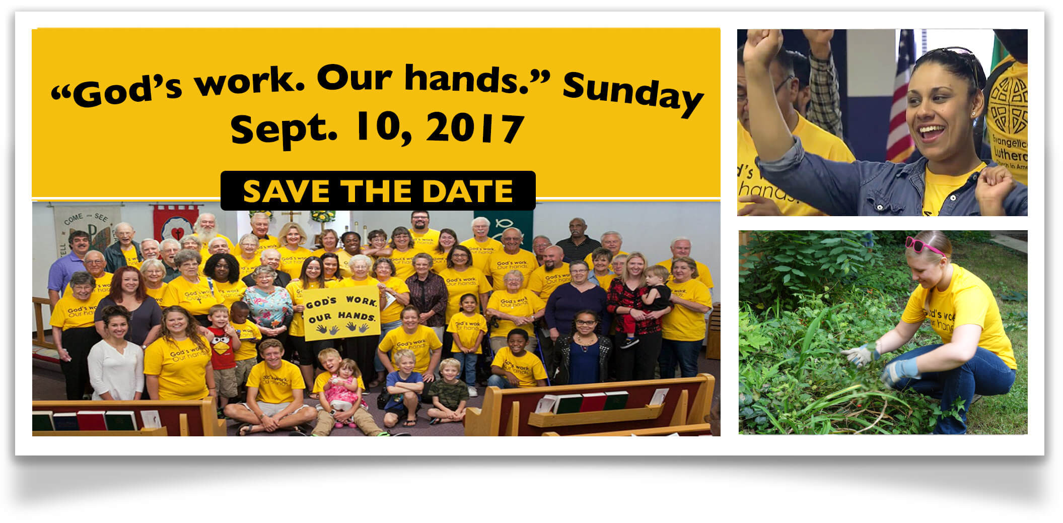 “God’s work. Our hands.” Sunday celebrates who we are as the ELCA – one church, freed in Christ to love and serve our neighbor. This is work you do in your communities every day, and we look forward to doing this work together again this year.