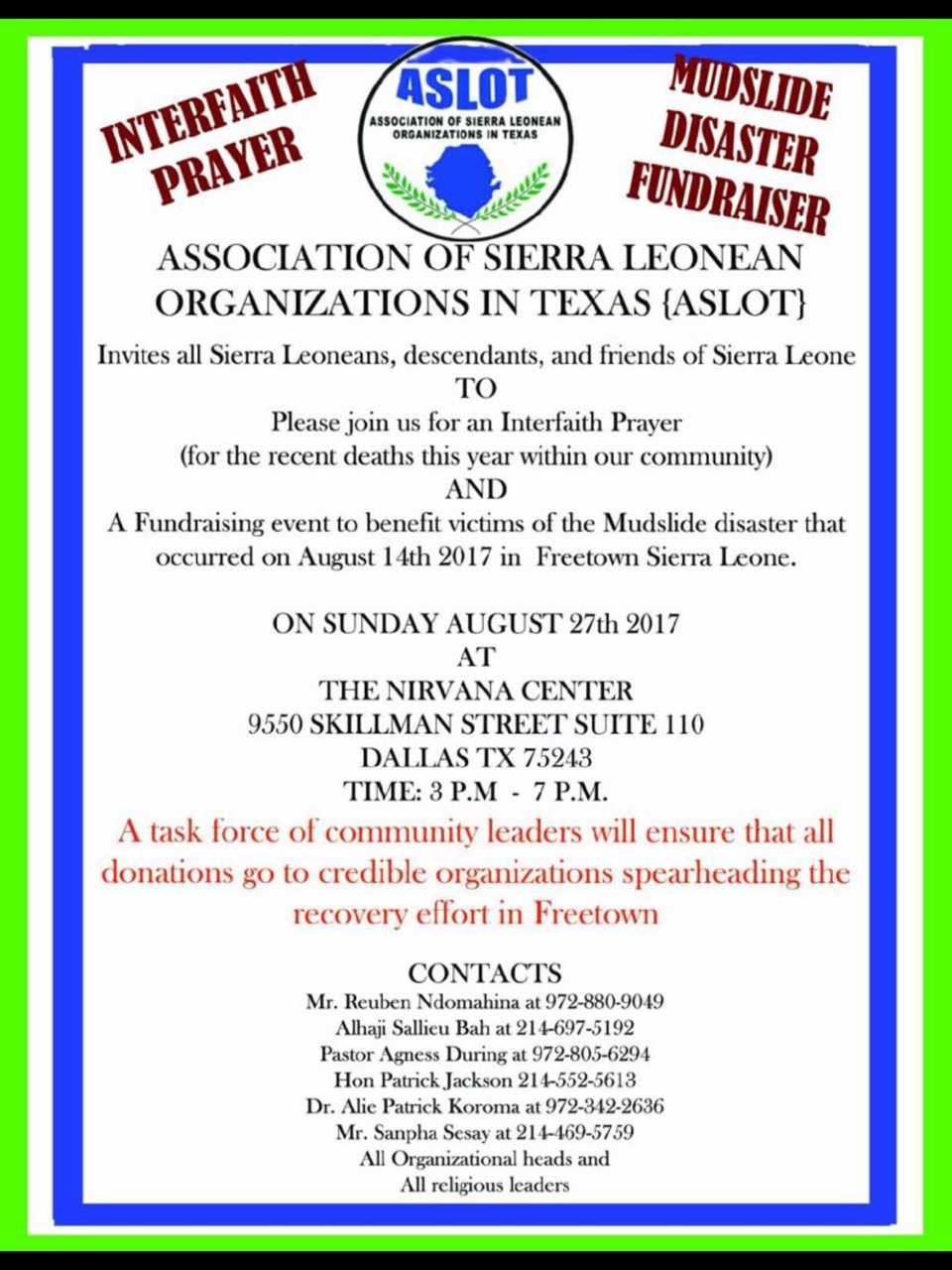 Interfaith Prayer Service and Fundraiser for Sierra Leone Disaster