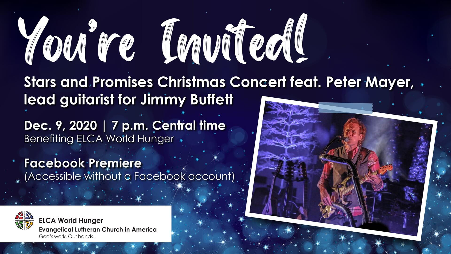 In the first ever event of its kind, ELCA World Hunger presents an online Christmas benefit concert featuring Peter Mayer, who is a longtime Lutheran and the lead guitarist for Jimmy Buffett.