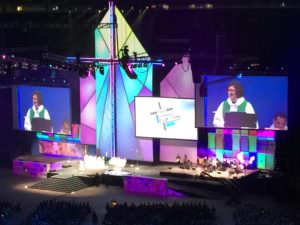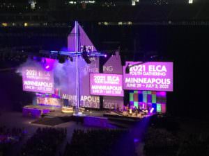 I’ve been to 8 or 9 National Youth Gatherings in my time – at least one pre-dating the ELCA. Honestly I have a hard time figuring out how many I’ve made it to. All but twice, I have attended in the role of a chaperone. Once I served as a hotel pastor when they still had planned activities at hotels, and this latest time now as a Youth Gathering Partner working the NT-NL booth in the Interactive Center. I was blessed to work with three young women from the synod: Alma from Emanuel in Dallas and Lynzy & Amanda from Calvary in Richland Hills. Alma shared many of her own photos and videos here: https://photos.app.goo.gl/zmqPnkdN1YwKyCX36