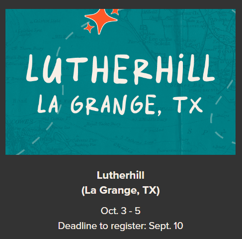 The Gathering Expedition is coming to Lutherhill (La Grange, Texas) on October 3-5. Registration and more information can be found here.