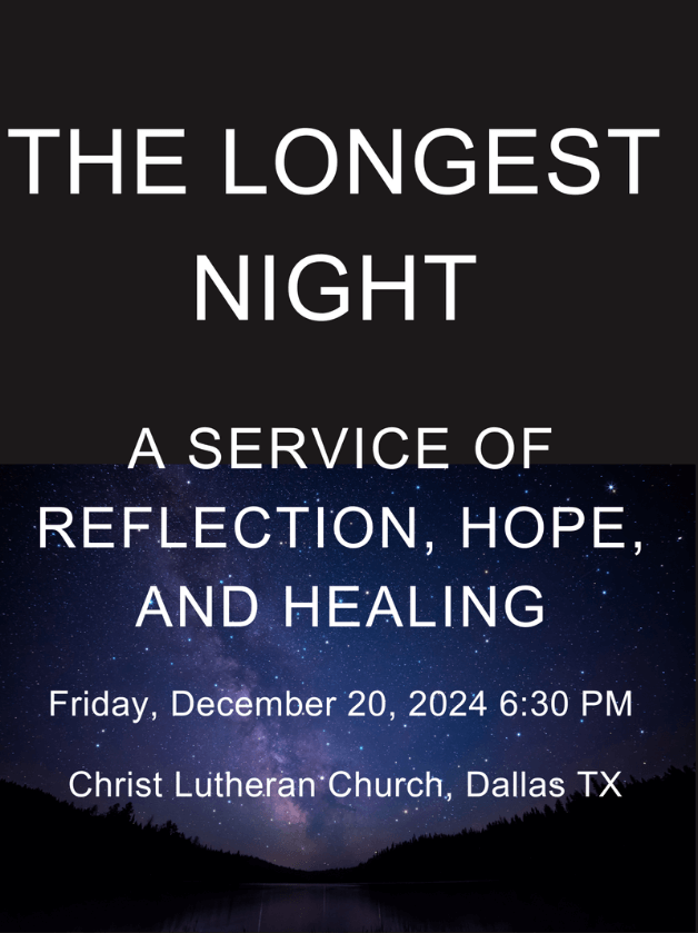 You are invited to join Christ, Dallas on Friday, December 20th at 6:30pm for a service of reflection, hope and healing. No RSVP required.
