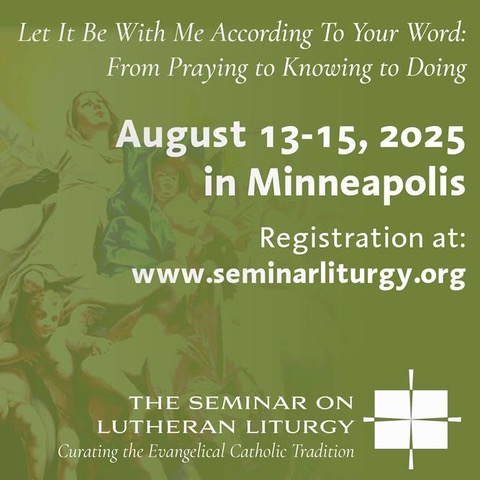 The first gathering of The Seminar on Lutheran Liturgy will take place in Minneapolis August 13-15; early-bird registration is now open. Under the theme ““Let It Be With Me According To Your Word: From Praying to Knowing to Doing,” the Seminar will host Pastors, Deacons, Musicians, and Seminarians to discuss liturgical formation in the ELCA in the evangelical catholic tradition. Plenary speakers include Max Johnson (University of Notre Dame), Ed Foley (Catholic Theological Union, Chicago), Audrey West (Lutheran School of Theology/Yale), and Lizette Larson-Miller (Diocese of Huron), as well as Daniel Schwandt, Kevin Vaughn, Andrew Schaeffer, and the Minnesota Boychoir as musicians. Much more information and registration can be found at www.seminarliturgy.org.