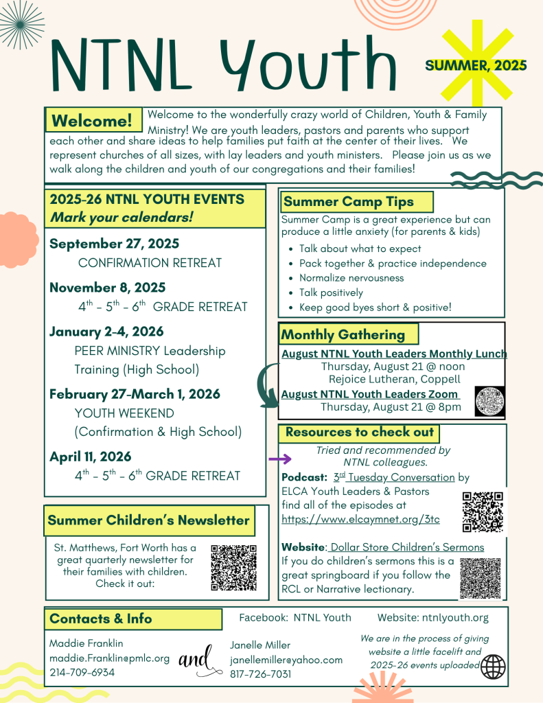 If you have any questions about NT-NL Youth activities please reach out to Maddie Franklin or Janelle Miller.