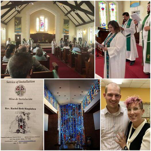 Kris then traveled the 200 miles back to Old East Dallas and Emanuel Lutheran Church; Iglesia Luterana Emanuel, Dallas for the installation of the Pr. Rachel Ringlaben to serve this historic bi-lingual congregation. She was joined there by our NT-NL DEM the Rev. Irma Banales who read a letter of greeting from me. Rev. Ringlaben was installed by our Eastern Conference Dean the Rev. Jeff Bergeron and the Rev. Jesus Escamilla, Dean of our Conferencia Latina NT-NL ELCA.