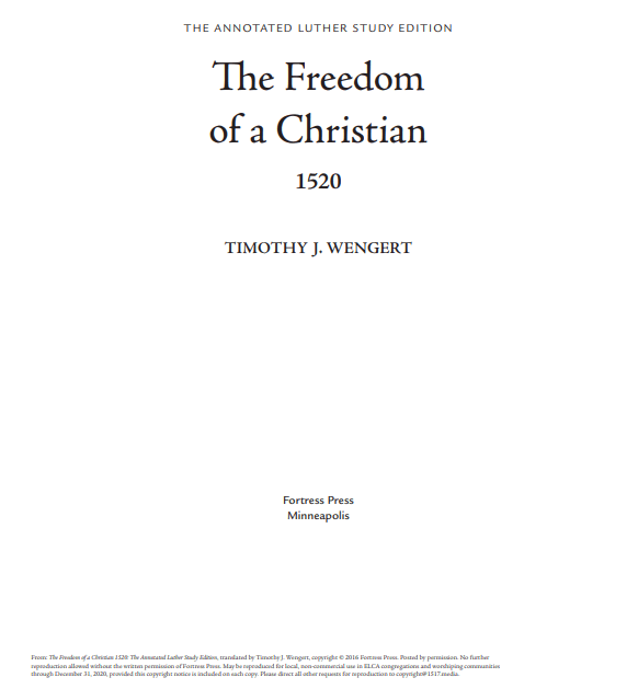 You are invited to study and reflect on Martin Luther’s treatise “The Freedom of a Christian” in 2020, its 500th anniversary. The treatise invites us to hear, share and experience the Lutheran witness of the Christian faith as it relates to God’s narrative of freedom in Christ. This initiative extends our engagement in the 500th anniversary of the Reformation. Learn more at ELCA500.org.