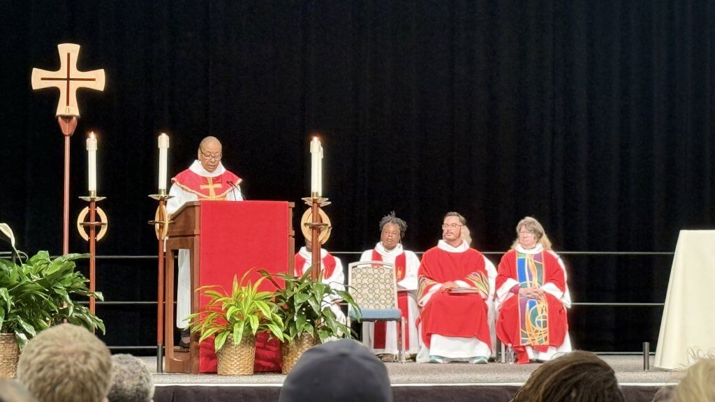 Trying to put into words how moving the worship sessions are, is very difficult. One has to be present to fully experience those moments. You can find the videos of the assembly plenary and worship services here: https://tinyurl.com/ELCA-2025-CWA . In her address to the assembly in plenary 7 which you can find in the link, Bishop Eaton makes a very powerful statement starting about minute 44 into that video. She asks,
