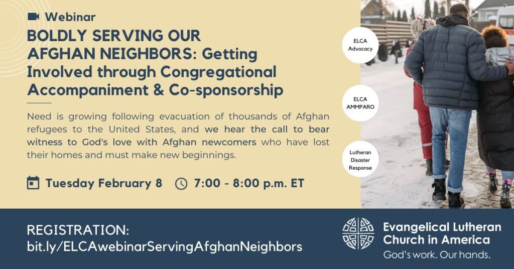 On February 8 at 6pm Central time, AMMPARO will host an informational webinar addressing Afghan refugee resettlement and how congregations can become involved. Register here.