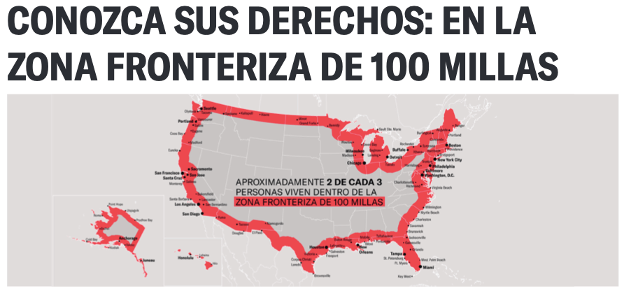 La ACLU ofrece este recurso gratuito en línea, Conozca sus derechos: En la zona fronteriza de 100 millas.