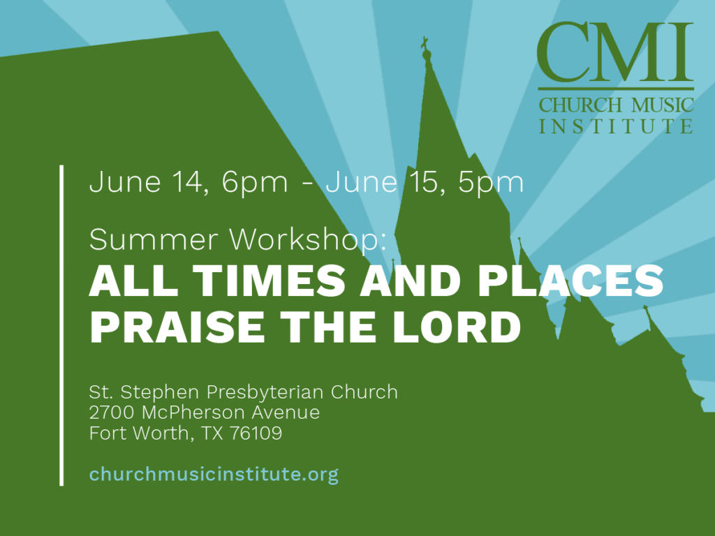 For more details, schedule information, or to register, visit www.churchmusicinstitute.org or contact Benjamin Kolodziej, CMI Director of Programs (bkolodziej@churchmusicinstitute.org).