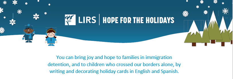 Link to toolkit: https://www.lirs.org/wp-content/uploads/2019/07/2019-Hope-for-the-Holidays-Card-Campaign.pdf