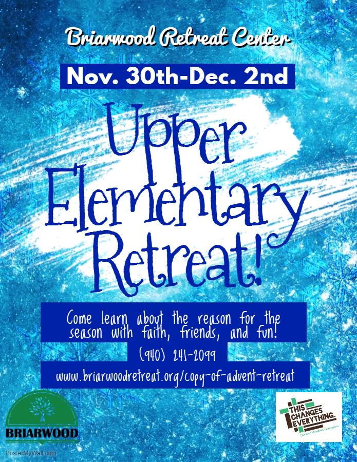 - Nov. 30 – Dec. 2: Upper Elementary Winter Retreat, Briarwood
