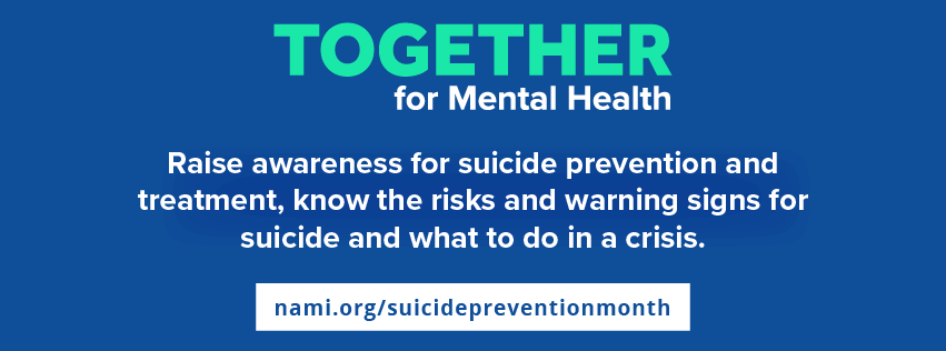 For more information and resources for Suicide Prevention Awareness Month go to the National Alliance on Mental Illness’ website.