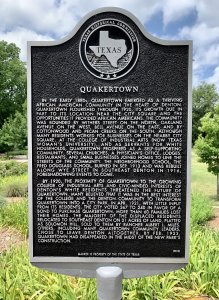 The Texas State historical marker describing the site of present-day Quakertown Park. (photo by Robert O. Smith)
