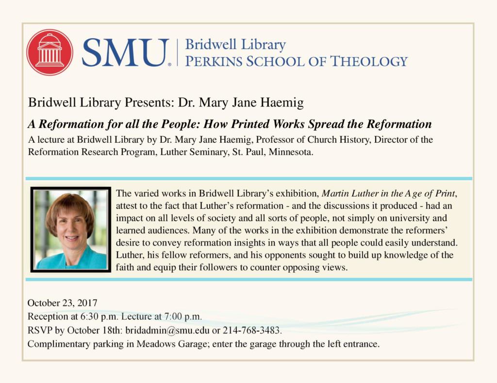 A lecture at Bridwell Library by Dr. Mary Jane Haemig, Professor of Church History, Director of the Reformation Research Program, Luther Seminary, St. Paul, Minnesota.