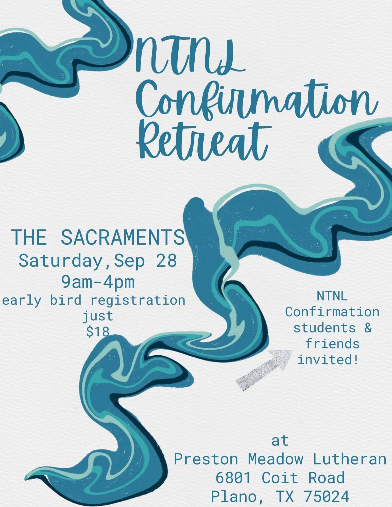 Join NTNL confirmation students for a day of camp songs, games, Bible studies, crafts, and activities centered around the sacraments! This is being led by the Crosstails Ministry staff Lunch and snacks provided. Please bring a refillable water bottle Cost: $18 Early Bird Registration (before Sept. 15) $45 Regular Registration (after Sept 16) Registration and...
