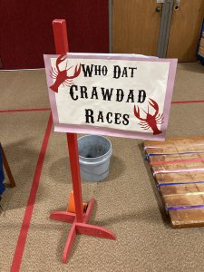 Martin Luther made an appearance while we all dined on a delicious pancake and sausage breakfast. There was King Cake and limbo dancing and a mini Mardi Gras parade. Plus crawdad races (all crawdads were later released in a local wildlife area) and a pancake flipping race.