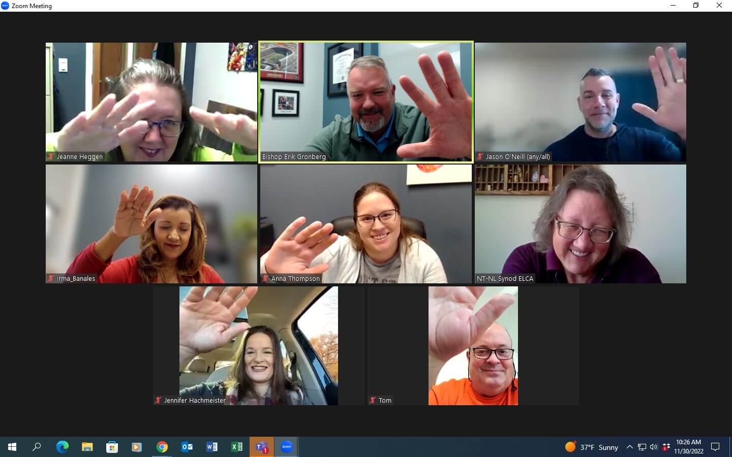 Beginning Dec 1st, our synod Bishop’s Associate for Leadership Formation and Congregational Care, the Rev. Kris Totzke, will be on sabbatical. As such, at the end of staff meeting this morning we blessed her on her way with a virtual laying on of hands and prayer.