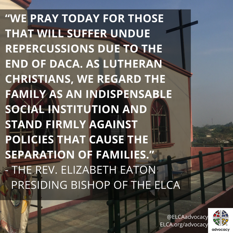 ELCA Presiding Bishop Elizabeth Eaton has issued a statement in response to last week’s announcement on the Deferred Action for Childhood Arrivals (DACA) program.