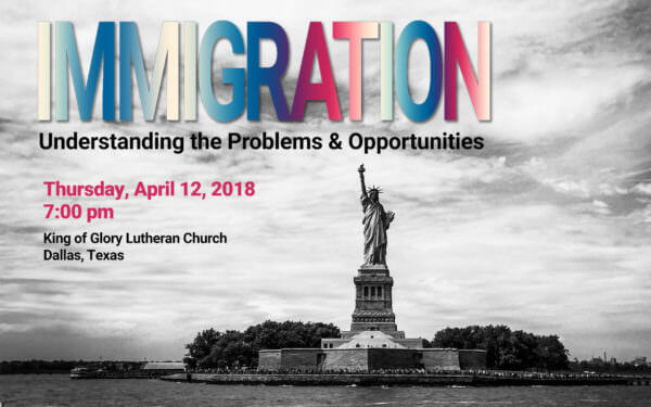 King of Glory Lutheran Church - Dallas 6411 LBJ Freeway ·, Dallas, TX, United StatesAre you confused about immigration? Do you want to know more than just sound bites? What are the facts and what do we really need to know? You are invited to join us and our distinguished panel of speakers as they share their knowledge and discuss with the audience their perspective on the issue of...