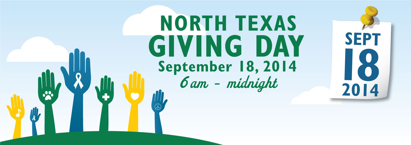 On September 18, 2014, donations can be made 6 a.m. to midnight to more than 1,600 certified nonprofits listed on the new website NorthTexasGivingDay.org. Donations $25 and above will be amplified by $2 million in bonus funds and prizes.