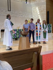 This Sunday, the patience of the good people at Preston Meadow paid off as they installed their new Pastor for Group Life, the Rev. Dr. Erin Swenson-Reinhold. This has been a long process as the call committee was searching for just the right pastor. Timing also needed to be right for the family to relocate here from Virginia between schools years. The family was also welcomed into membership at Preston Meadow on Sunday as well.