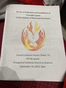 Saturday was a special day in the life of our synod as we celebrated the Ordination and Installation of Veronika Czutor as Pastor at Central Lutheran in Dallas. Veronika went through her candidacy in our synod, so I always have special joy and pride as we ordain one of our own here.